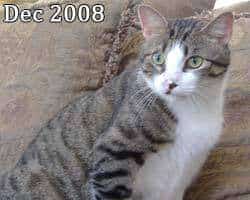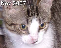 The cat recovered and obtained a loving home through the treating veterinarian, Dr. Broadhurst of Pinehurst, NC, and The Moore Humane Society.